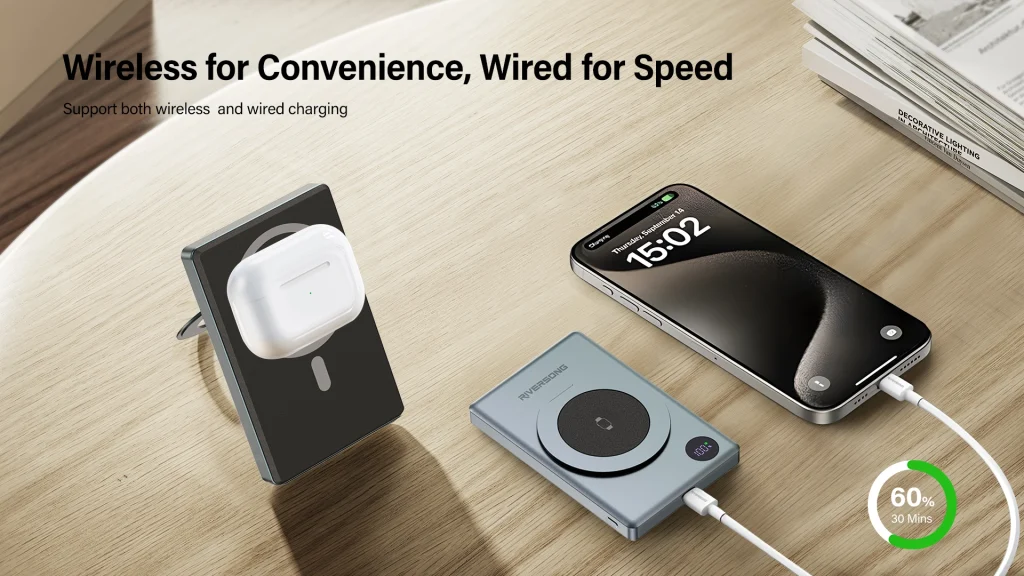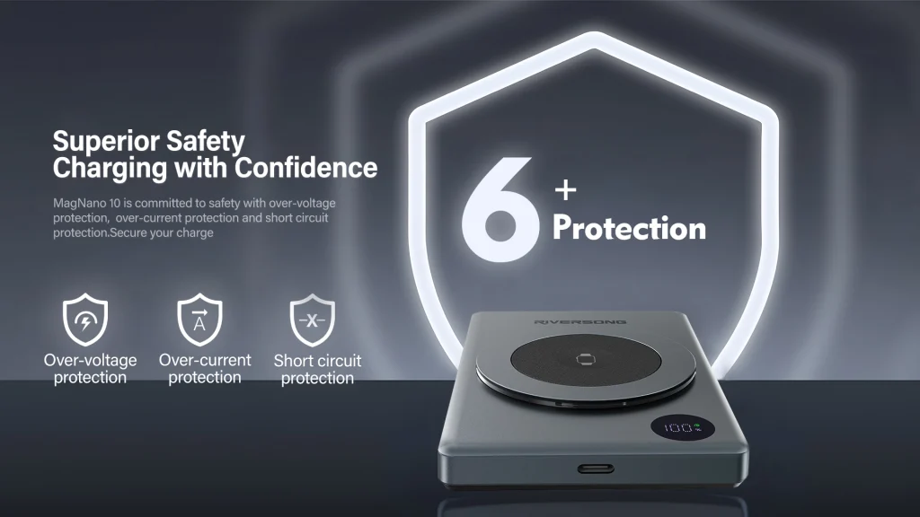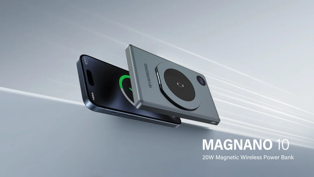 پاوربانک MagNano 10 از برند Riversong یک مدل جمعوجور و مغناطیسی با ظرفیت ۱۰٬۰۰۰ میلیآمپرساعت است که ترکیبی از شارژ بیسیم مگنتی و شارژ سریع کابلی را ارائه میدهد. این محصول برای کسانی طراحی شده که میخواهند آزادی از کابل همراه داشته باشند ولی همچنان به سرعت شارژ نیز نیاز دارند.